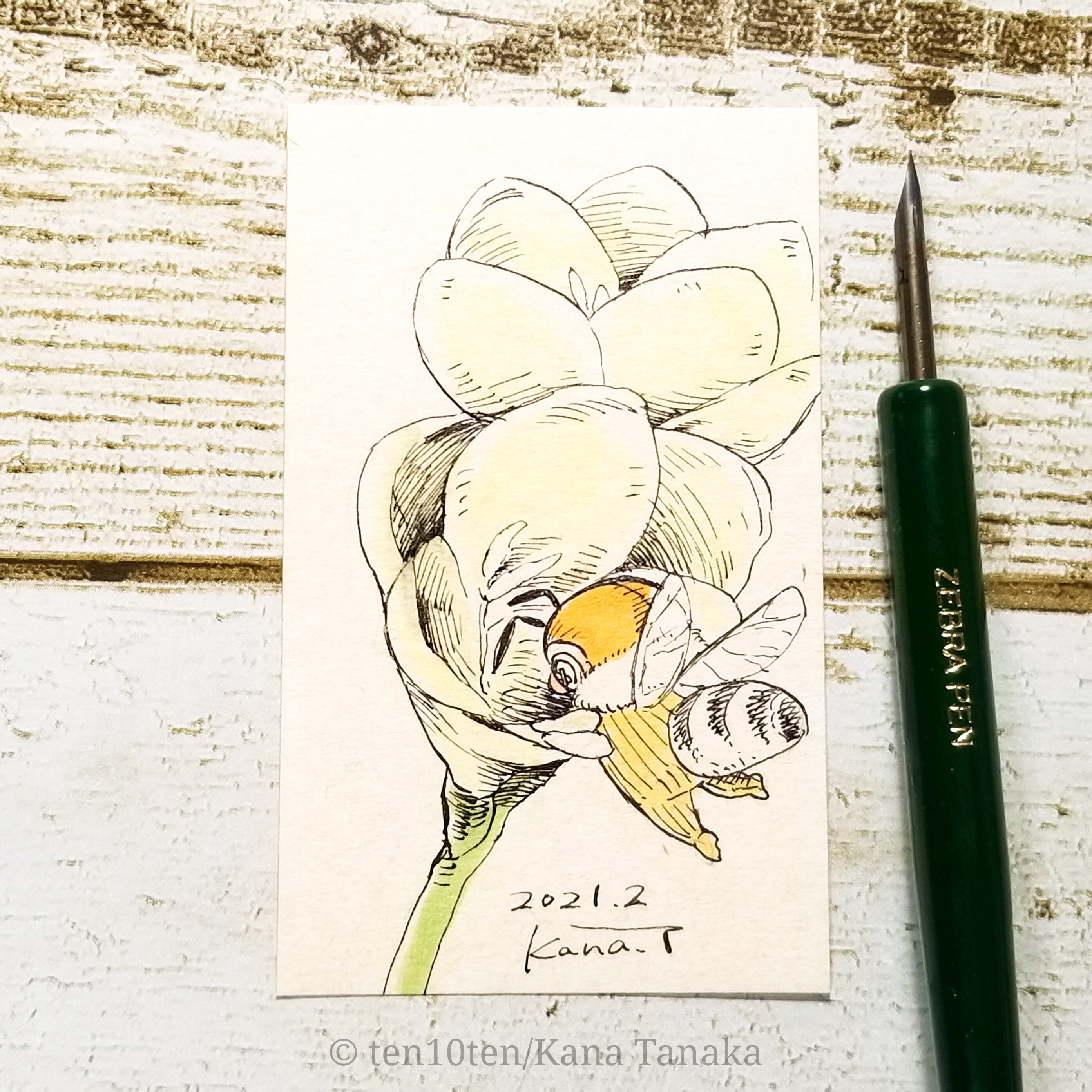 名刺サイズのドローイング作品です。 オリジナルキャラクターのぬいぐる'sには、色々な生き物がいます。 今回はミツバチの子。 どんな香りがするのかしら? サイズ:55mm×91mm ケース:硬質塩化ビニル樹脂 ※送料込みの商品です。普通郵便にてお届けします。 ※ドローイングの発送は毎週月曜日にまとめて行います。