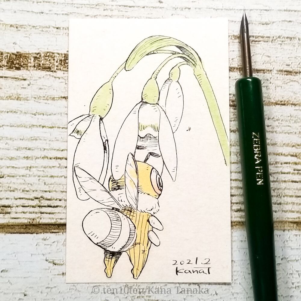 名刺サイズのドローイング作品です。 ミツバチの子と巡る月のお花シリーズ。 今回はスノードロップ。 サイズ:55mm×91mm ケース:硬質塩化ビニル樹脂 ※送料込みの商品です。普通郵便にてお届けします。 ※ドローイングの発送は毎週月曜日にまとめて行います。
