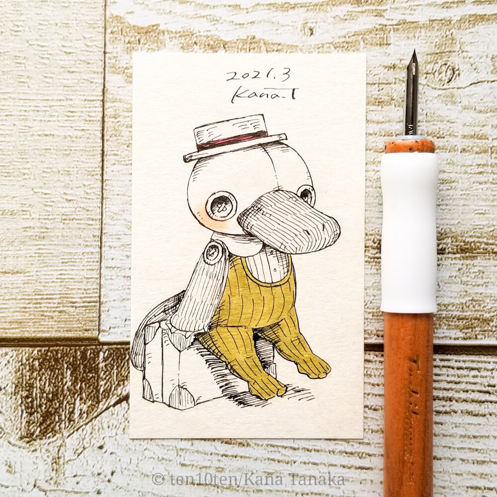 名刺サイズのドローイング作品です。 オリジナルキャラクターのぬいぐる'sには、色々な生き物がいます。 今回はかものはしの子。 旅の途中の待ち時間も幸せ。 サイズ:55mm×91mm ケース:硬質塩化ビニル樹脂 ※送料込みの商品です。普通郵便にてお届けします。 ※ドローイングの発送は毎週月曜日にまとめて行います。