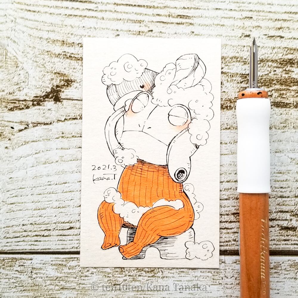 名刺サイズのドローイング作品です。 オリジナルキャラクターのぬいぐる'sには、色々な生き物がいます。 今回はけろ太とオタマ。 水は平気だけど、泡はちょっと苦手。 サイズ:55mm×91mm ケース:硬質塩化ビニル樹脂 ※送料込みの商品です。普通郵便にてお届けします。 ※ドローイングの発送は毎週月曜日にまとめて行います。