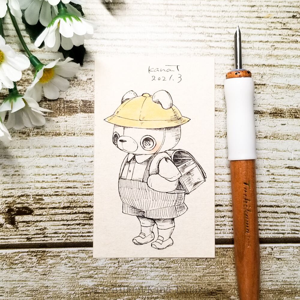 名刺サイズのドローイング作品です。 オリジナルキャラクターのぬいぐる'sには、色々な生き物がいます。 今回はくまの子。 桜の咲く季節に。 サイズ:55mm×91mm ケース:硬質塩化ビニル樹脂 ※送料込みの商品です。普通郵便にてお届けします。 ※ドローイングの発送は毎週月曜日にまとめて行います。