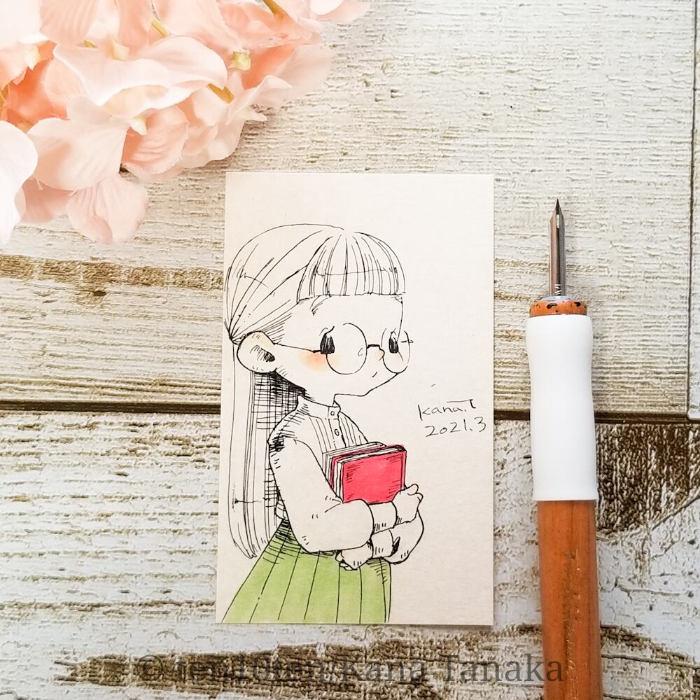 名刺サイズのドローイング作品です。 本の中に行きたい。 サイズ:55mm×91mm ケース:硬質塩化ビニル樹脂 ※送料込みの商品です。普通郵便にてお届けします。 ※ドローイングの発送は毎週月曜日にまとめて行います。