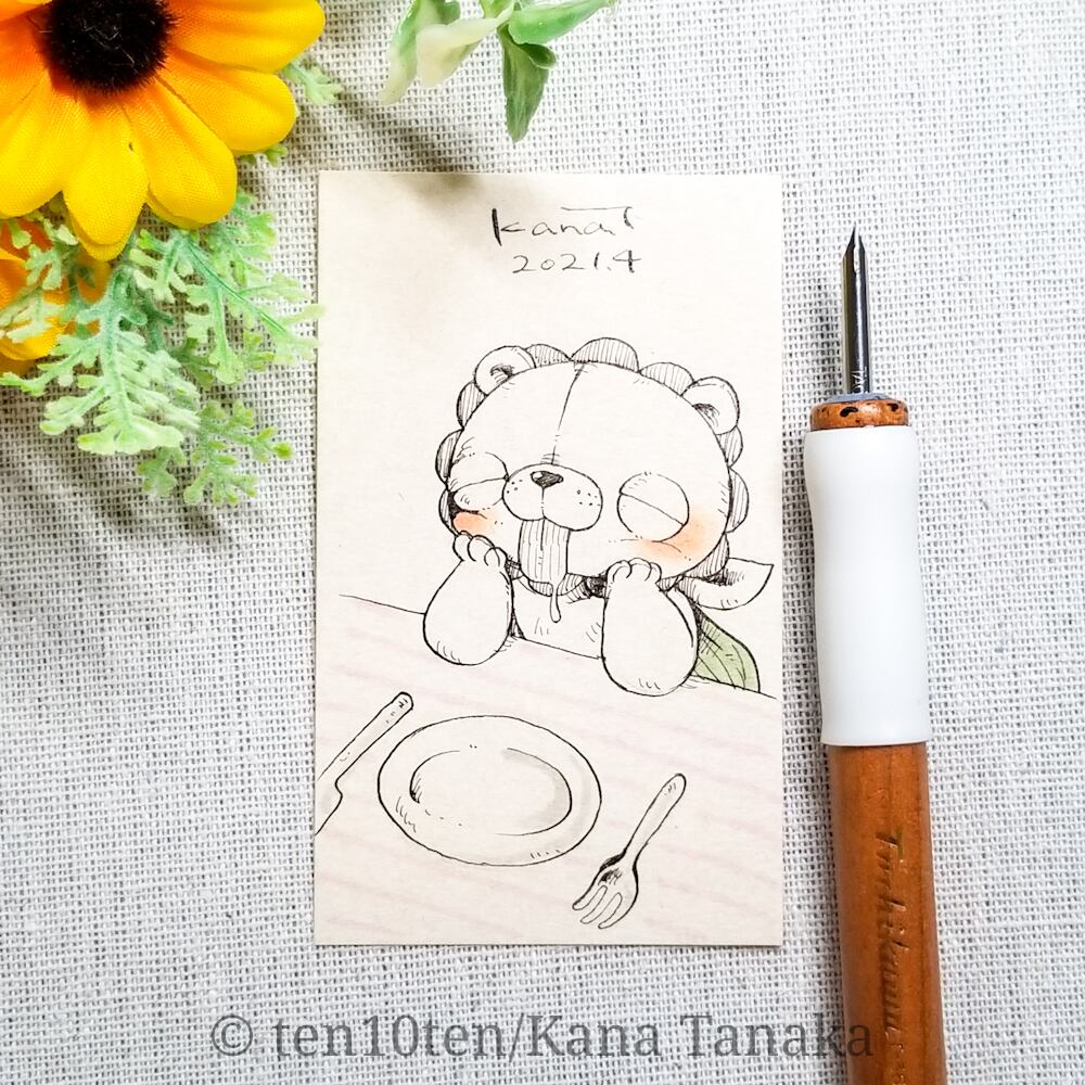 名刺サイズのドローイング作品です。 オリジナルキャラクターのぬいぐる'sには、色々な生き物がいます。 今回はらいおんの子。 今日のご飯はなにかしら? サイズ:55mm×91mm ケース:硬質塩化ビニル樹脂 ※送料込みの商品です。普通郵便にてお届けします。 ※ドローイングの発送は毎週月曜日にまとめて行います。