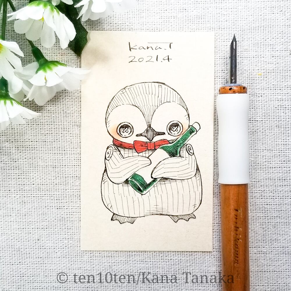 名刺サイズのドローイング作品です。 オリジナルキャラクターのぬいぐる'sには、色々な生き物がいます。 今回はペンギンの子。 おすすめの一本。 サイズ:55mm×91mm ケース:硬質塩化ビニル樹脂 ※送料込みの商品です。普通郵便にてお届けします。 ※ドローイングの発送は毎週月曜日にまとめて行います。
