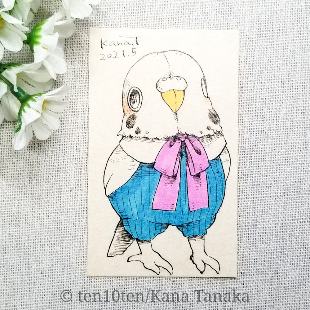 名刺サイズのドローイング作品です。 オリジナルキャラクターのぬいぐる'sには、色々な生き物がいます。 今回はセキセイインコの子。 おしゃべりなお嬢さん サイズ:55mm×91mm ケース:硬質塩化ビニル樹脂 ※送料込みの商品です。普通郵便にてお届けします。 ※ドローイングの発送は毎週月曜日にまとめて行います。