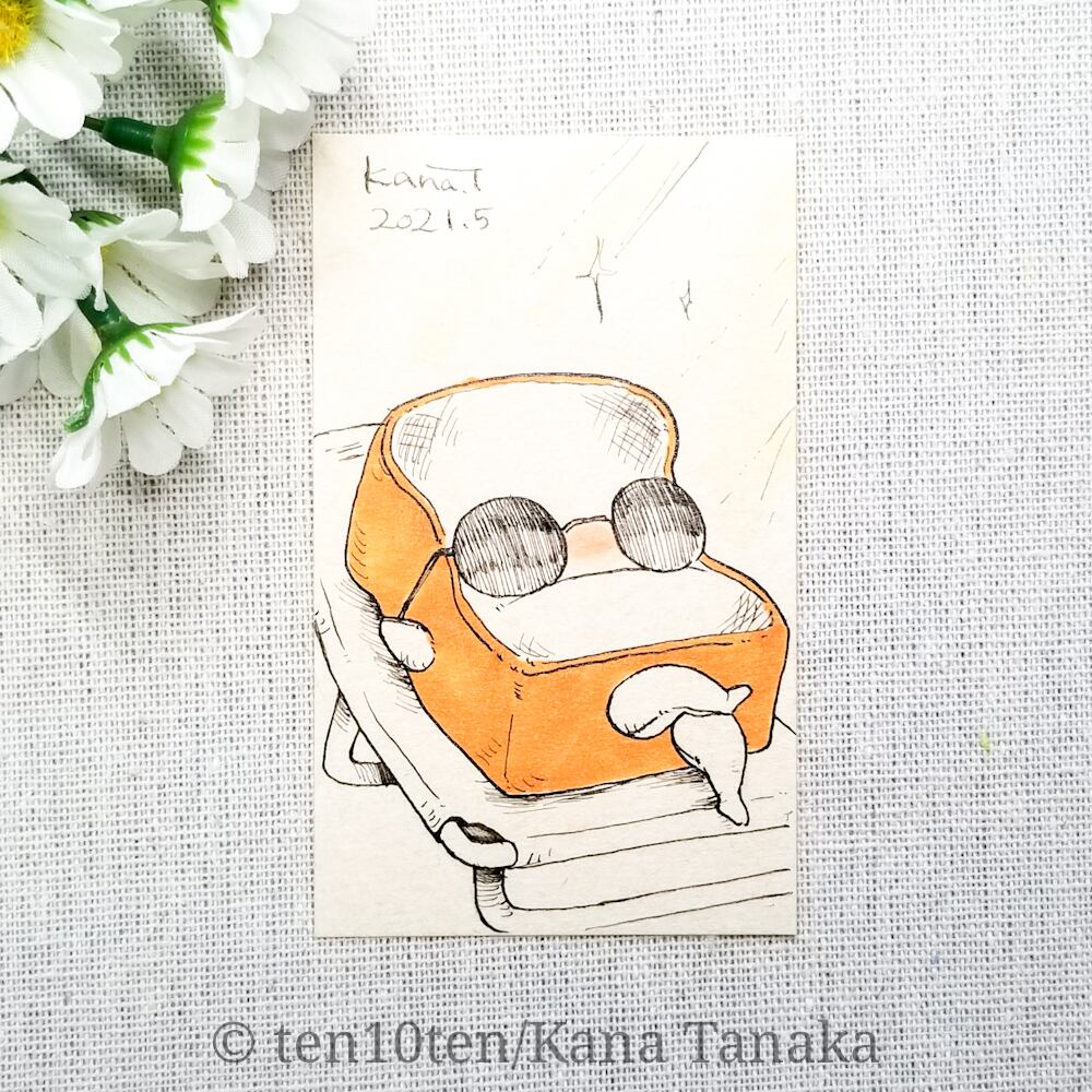 名刺サイズのドローイング作品です。 オリジナルキャラクターのぬいぐる'sには、色々な生き物がいます。 今回は食パンの子。 夏を先取り サイズ:55mm×91mm ケース:硬質塩化ビニル樹脂 ※送料込みの商品です。普通郵便にてお届けします。 ※ドローイングの発送は毎週月曜日にまとめて行います。