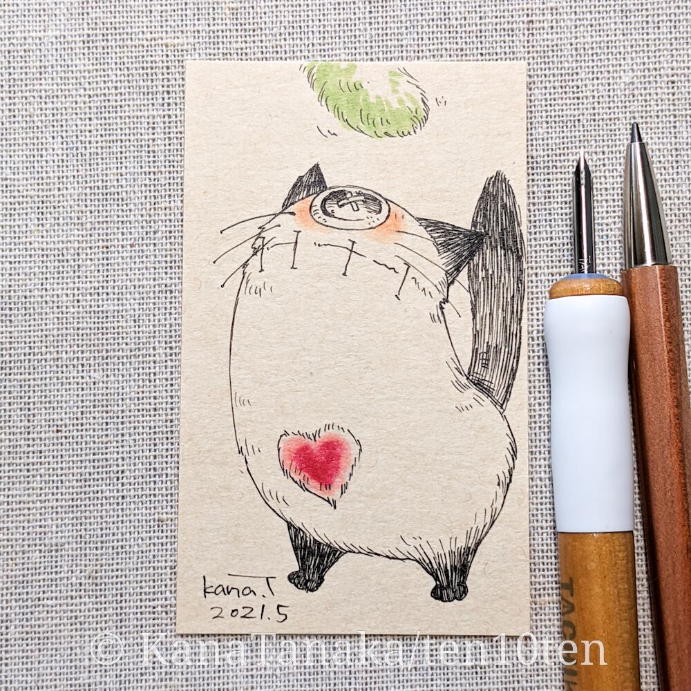 名刺サイズのドローイング作品です。 オリジナルキャラクターのぬいぐる'sには、色々な生き物がいます。 今回は一つ目シリーズより、にゃん。 届くかな? サイズ:55mm×91mm ケース:硬質塩化ビニル樹脂 ※送料込みの商品です。普通郵便にてお届けします。 ※ドローイングの発送は毎週月曜日にまとめて行います。