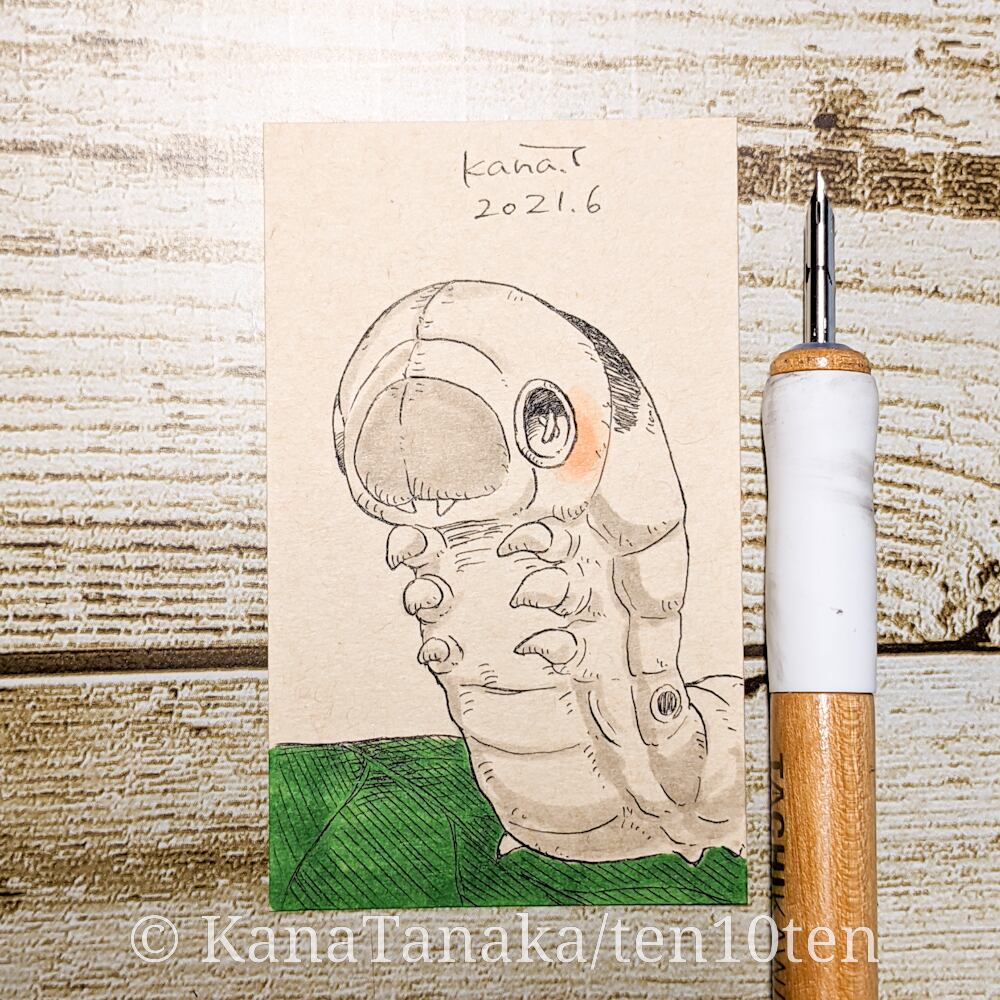 名刺サイズのドローイング作品です。 オリジナルキャラクターのぬいぐる'sには、色々な生き物がいます。 今回は蚕の子。 リクエストから生まれた子。 いっぱい食べて大きくなるぞ! サイズ:55mm×91mm ケース:硬質塩化ビニル樹脂 ※送料込みの商品です。普通郵便にてお届けします。 ※ドローイングの発送は毎週月曜日にまとめて行います。