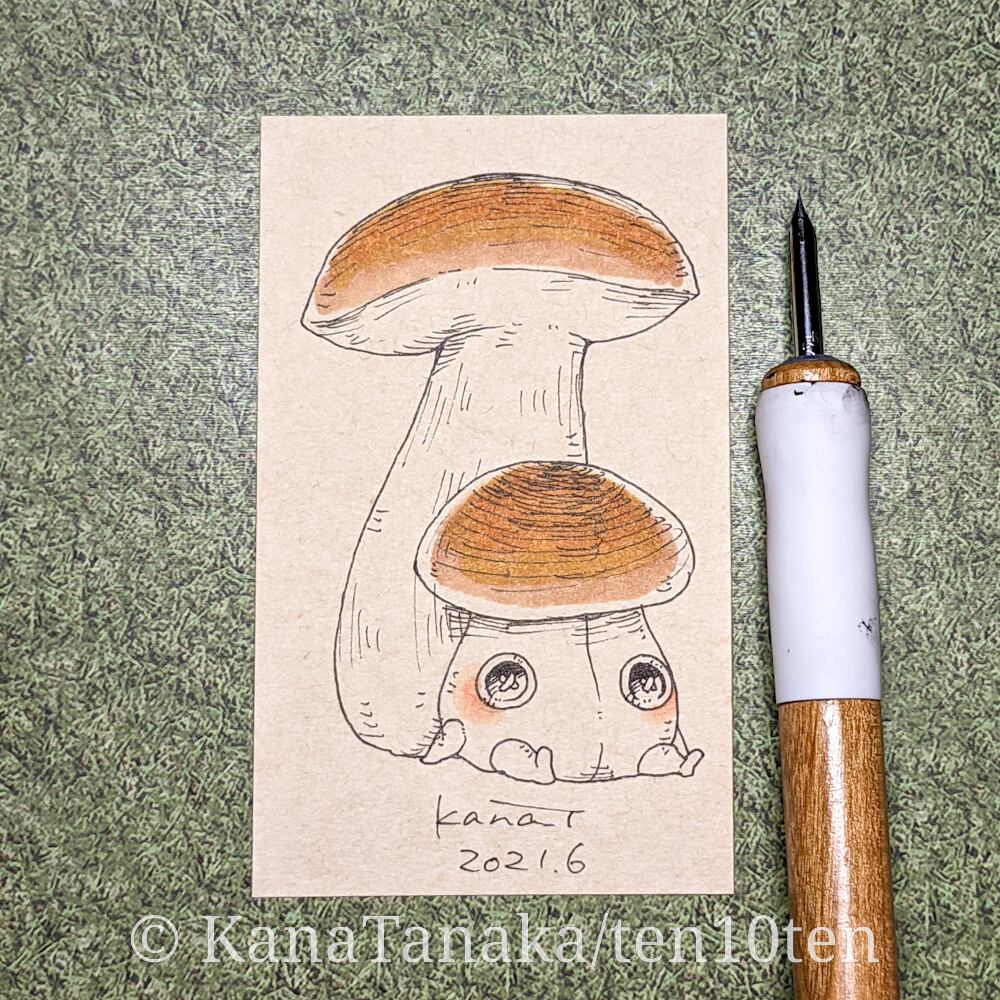 名刺サイズのドローイング作品です。 オリジナルキャラクターのぬいぐる'sには、色々な生き物がいます。 今回はヤマドリタケの子。 ヤマドリタケの赤ちゃん。 ふっかふかのパンに憧れている。 サイズ:55mm×91mm ケース:硬質塩化ビニル樹脂 ※送料込みの商品です。普通郵便にてお届けします。 ※ドローイングの発送は毎週月曜日にまとめて行います。