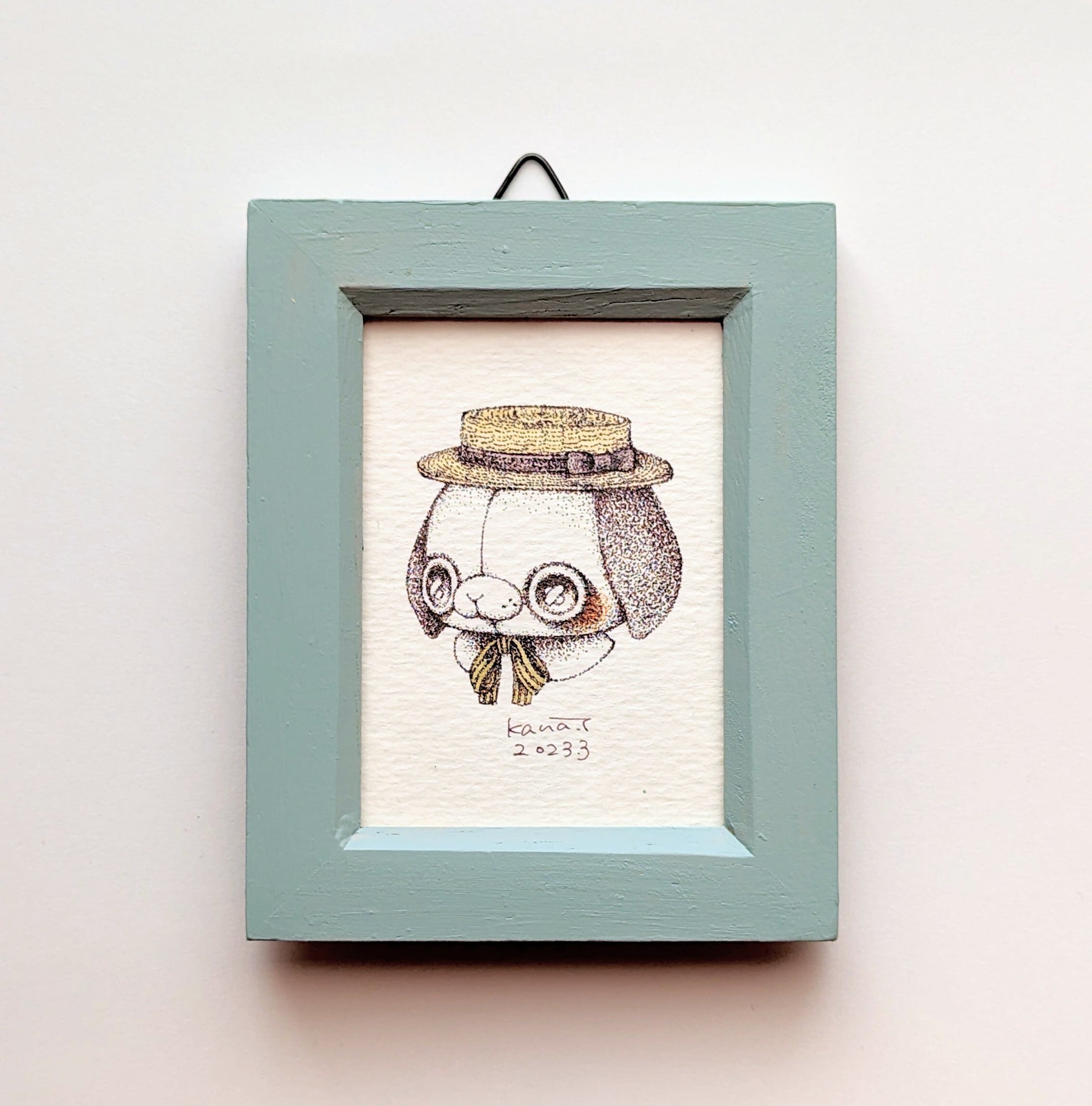 おっとりなあの子 サイズ:約7.8cm×9.8cm(額装含む) 額装:木、アクリル [取り扱いについて] 飾る際には直射日光を避けていただき、保管する際には高温多湿を避けて暗所に保管をお願いします。 特に、直射日光が当たると退色が早く、長く作品を楽しめなくなる可能性がございます。