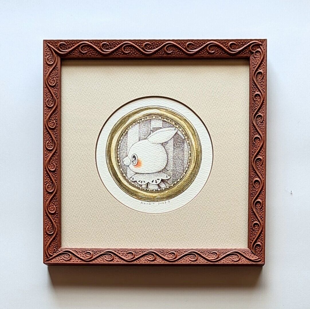 とあるうさぎの横顔 サイズ:約23cm×23cm(額装含む) 額装:木、アクリル [取り扱いについて] 飾る際には直射日光を避けていただき、保管する際には高温多湿を避けて暗所に保管をお願いします。 特に、直射日光が当たると退色が早く、長く作品を楽しめなくなる可能性がございます。