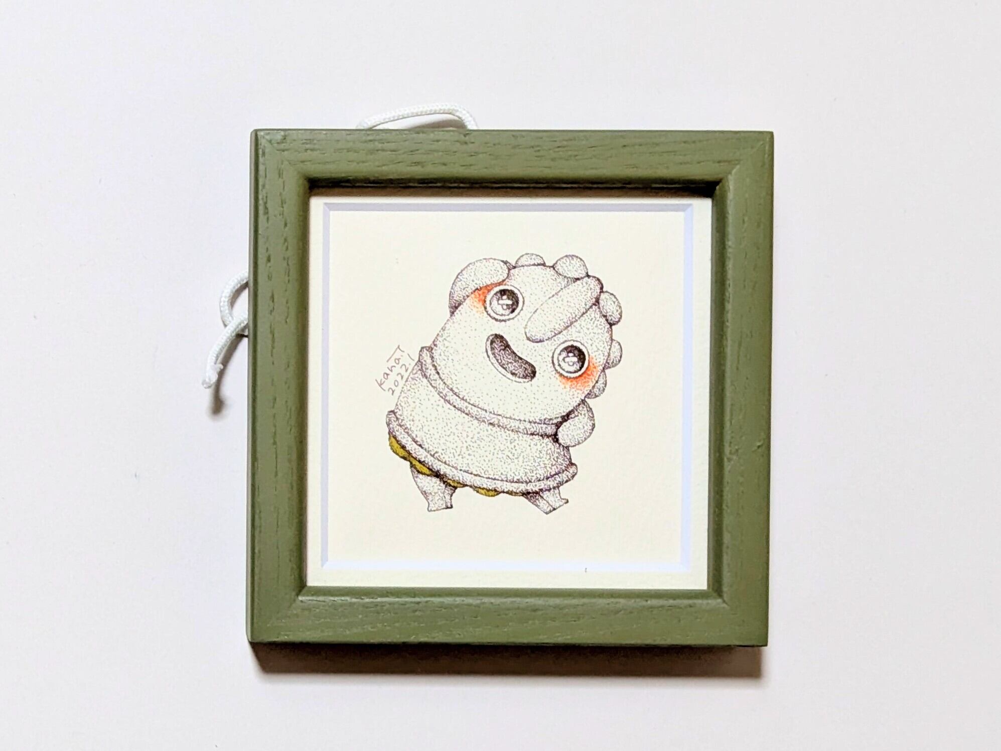 遊ぶ前にはしっかり準備するよ 画材:ボールペン(シグノ)、水彩紙、顔彩絵の具 サイズ:約11.7cm×11.7cm(額装込み) 額装:木、アクリル [取り扱いについて] 飾る際には直射日光を避けていただき、保管する際には高温多湿を避けて暗所に保管をお願いします。 特に、直射日光が当たると退色が早く、長く作品を楽しめなくなる可能性がございます。