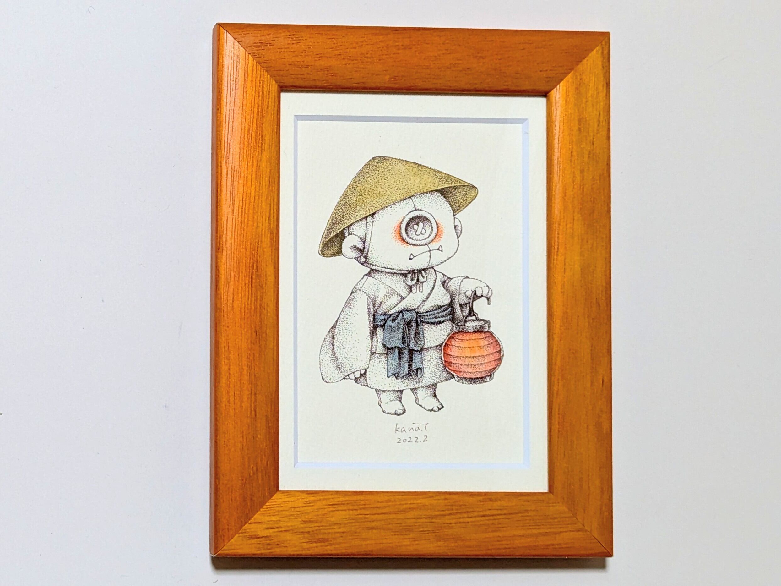 夜道は危ないよ 画材:ボールペン(シグノ)、水彩紙、顔彩絵の具 サイズ:約14cm×18.7cm(額装込み) 額装:木、ガラス [取り扱いについて] 飾る際には直射日光を避けていただき、保管する際には高温多湿を避けて暗所に保管をお願いします。 特に、直射日光が当たると退色が早く、長く作品を楽しめなくなる可能性がございます。