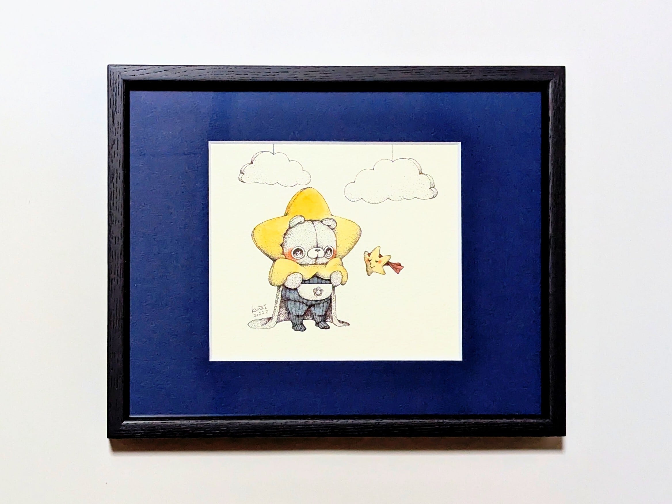 お揃いでかわいいね 画材:ボールペン(シグノ)、水彩紙 サイズ:約26cm×32.3cm(額装込み) 額装:木、アクリル [取り扱いについて] 飾る際には直射日光を避けていただき、保管する際には高温多湿を避けて暗所に保管をお願いします。 特に、直射日光が当たると退色が早く、長く作品を楽しめなくなる可能性がございます。